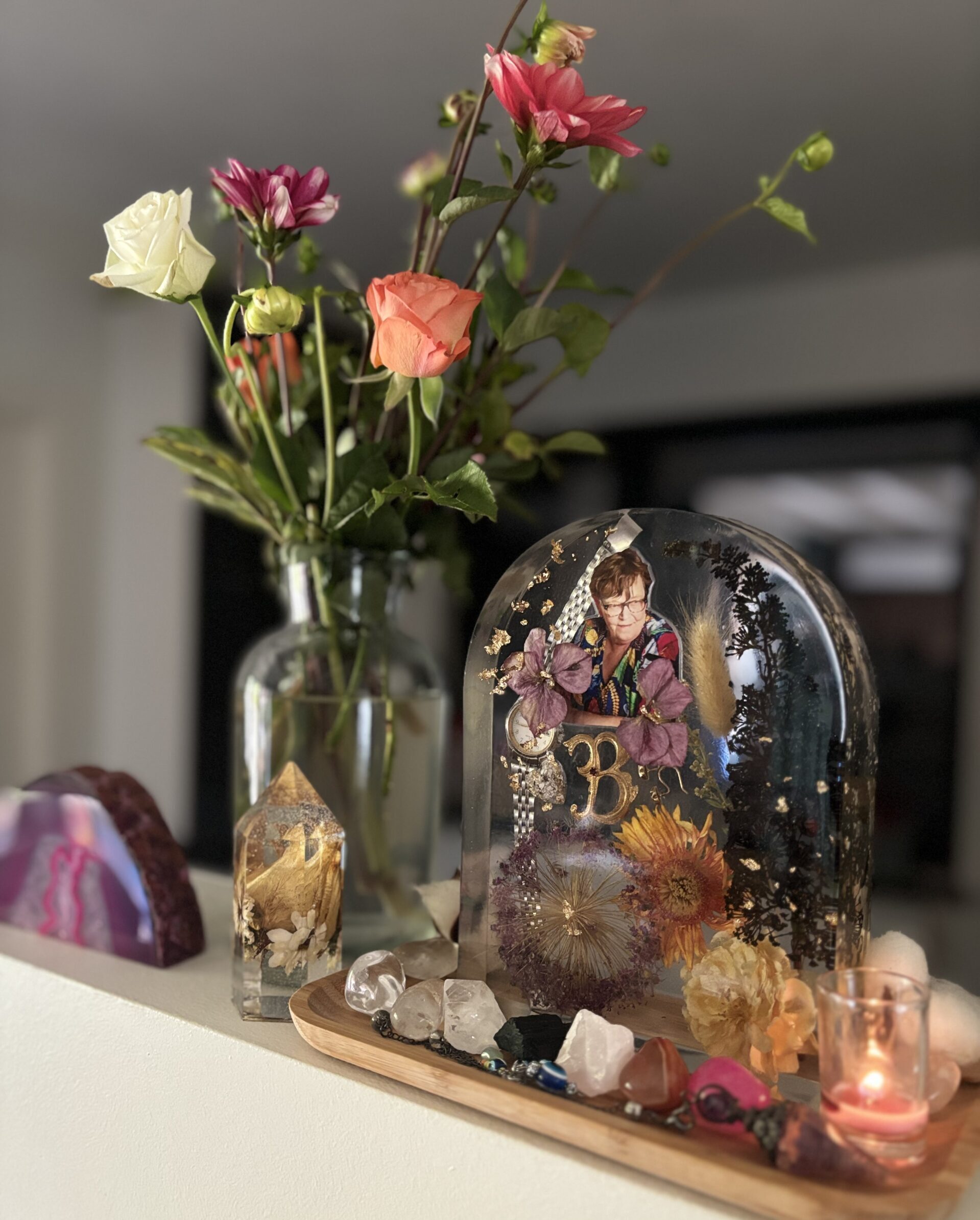 Deze wereld heeft me helemaal opgeslokt en is ook veel breder dan alleen maar as in epoxy, je kunt er alles in bewaren. Je kent het wel, je hebt spulletjes in je kast liggen van je overleden dierbare persoon of huisdier (een halsband