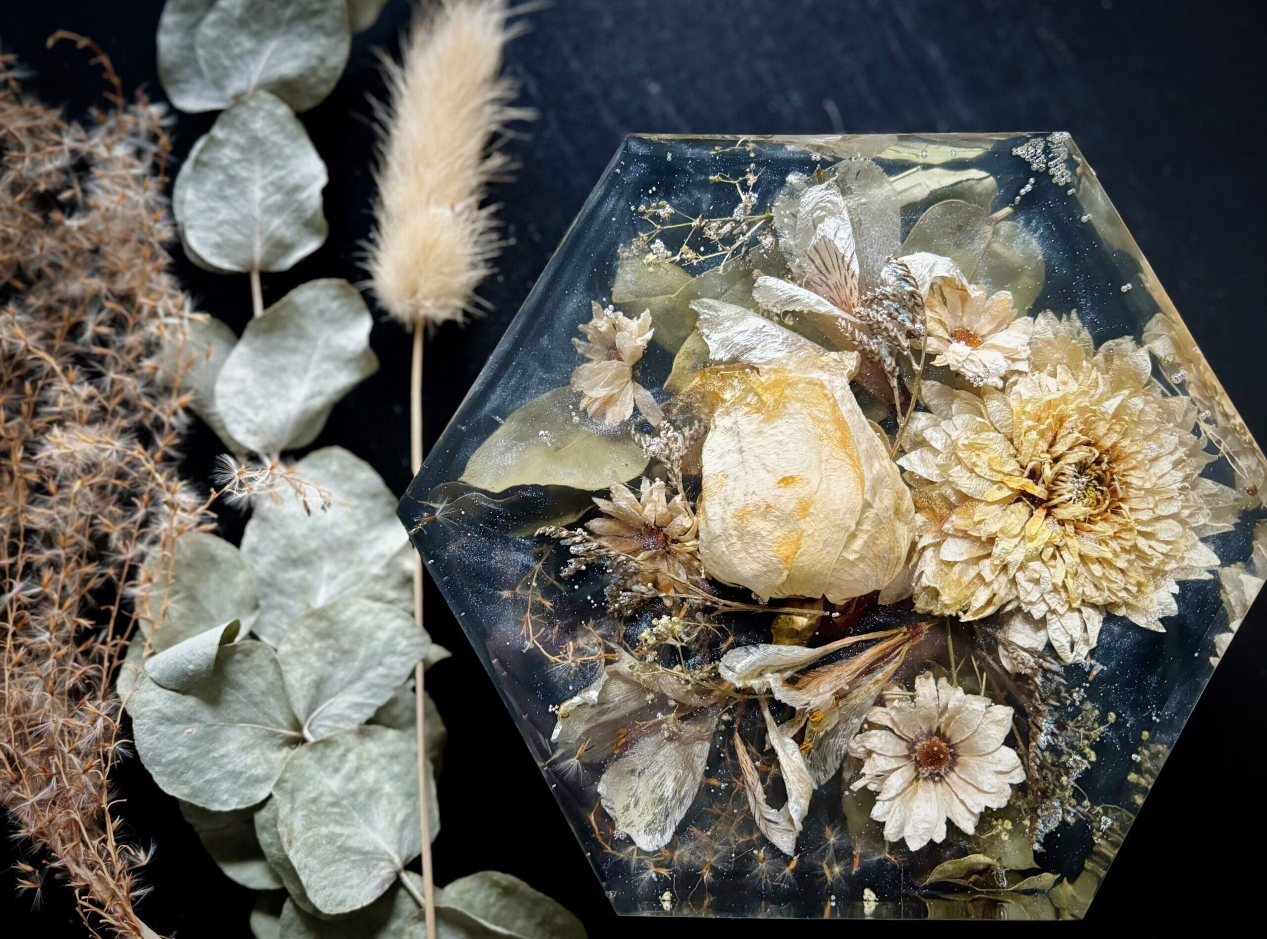 Ik maak tastbare herinneringen voor altijd in epoxy. Deze zijn altijd uniek en persoonlijk, er is geen dezelfde exemplaar. Omdat het persoonlijk is, heb ik geen voorbeeldenboekje om uit te kiezen en is er teveel mogelijk om hier
